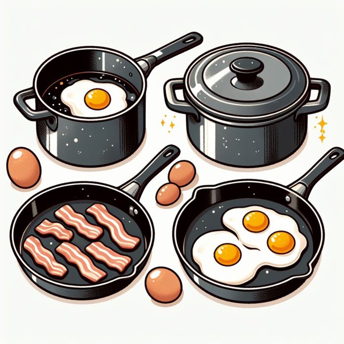 Pots, Pans, Baking Dishes, Tea Kettle.